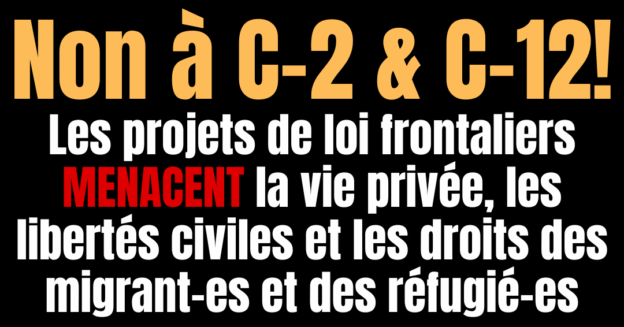 OTTAWA, le 9 octobre 2025 — Une large coalition d’organisations de défense des libertés civiles, de protection des données, des droits des personnes réfugiées et des migrantes, et de justice de genre s’oppose fermement au dépôt par le gouvernement fédéral du projet de loi C-12, qui cherche à accélérer l’adoption, plutôt qu’à résoudre, de nombreux aspects du projet de loi C-2 jugés problématiques. Des organisations de la société civile réitèrent leur appel au retrait complet des deux projets de loi, y compris l’expansion flagrante des pouvoirs de surveillance qui demeurent dans le projet de loi C-2, ainsi que les dispositions en matière d’immigration qui restreignent le droit d’asile et étendent les pouvoirs pour l’annulation en grand nombre des statuts d’immigration, désormais incluses dans le projet de loi C-12.